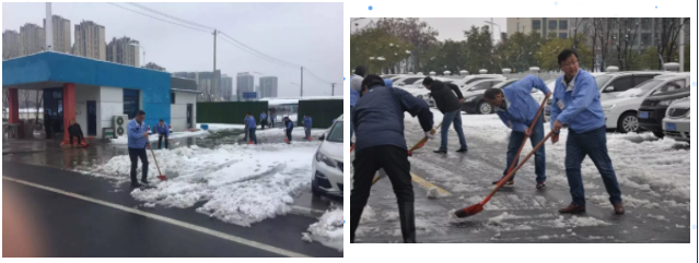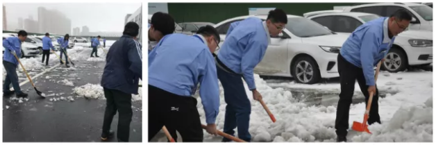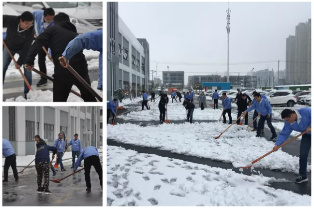 天亮了,上班路舉步維艱。大家?guī)缀跏腔械焦荆┖苊溃且矔?huì)給我?guī)碡?fù)擔(dān)。我們博訊廠區(qū)的廣場(chǎng)上鋪上了厚厚的積雪,給上班的同事們帶來了不便。行政人員第一時(shí)間組織人員進(jìn)行鏟雪,雖然當(dāng)時(shí)工具不齊全,但是輪番上陣也要融化這厚厚的雪。