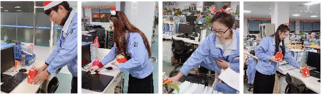 23日夜間行政工會人員將圣誕節(jié)平安果,放在每一位員工的辦公桌上。我們將平安和祝福送給公司的每一位員工,每一個平安果上都有我們滿滿的祝福。